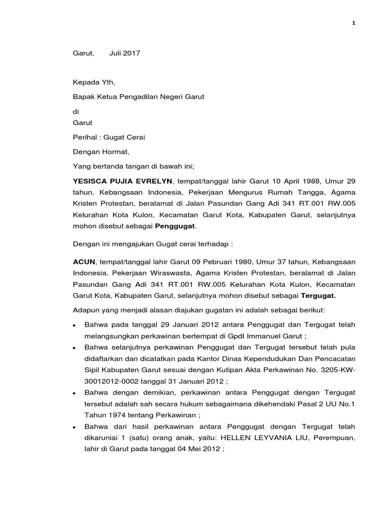Contoh surat gugatan cerai contoh surat gugatan cerai agama kristen protestan contoh surat gugatan cerai istri contoh surat gugatan cerai istri kepada suami di pengadilan negeri contoh surat gugatan cerai istri kepada suami pdf contoh surat gugatan cerai karena suami selingkuh contoh surat gugatan cerai kristen contoh surat gugatan cerai. Beulevard SektorAnggrekkomplek PerkantoranKotaKembangNo7kalimulya cilodong Kota Depok JawaBarat. Itulah yang dapat kami bagikan terkait contoh surat gugatan cerai agama kristen protestan.